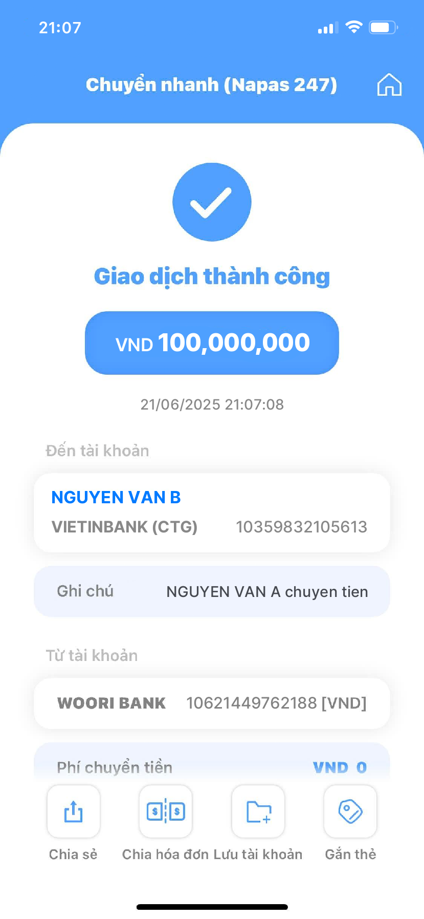 Fake bill chuyển khoản